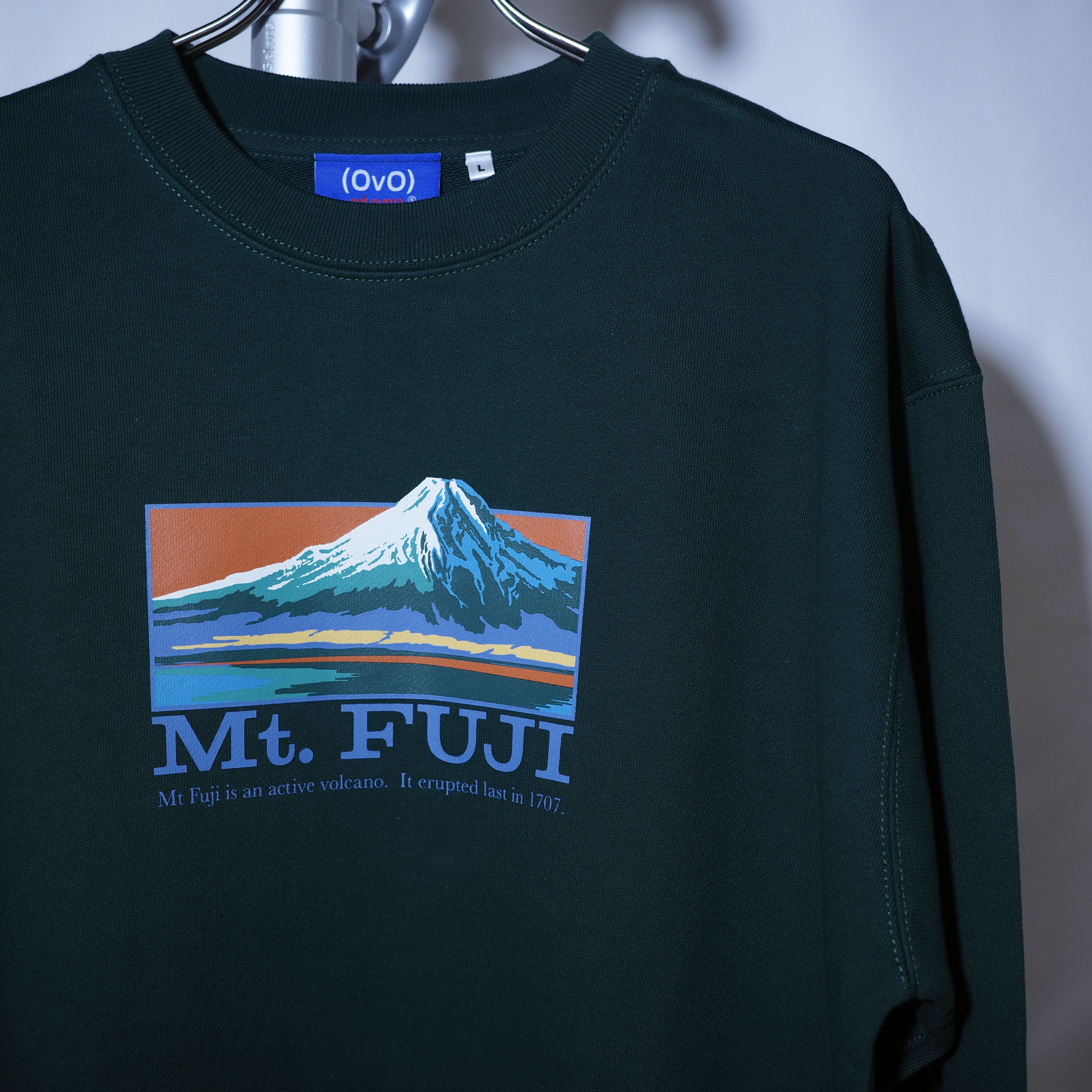 「(OvO) GREEN View Pullover」は、富士山と湖の景色が特徴的なプルオーバーです。自然の壮大さを感じさせるデザインは、日常のコーディネートに特別な魅力を添え、カジュアルながらも印象的なスタイルを演出します。ユニセックスなデザインで、さまざまなシーンに活躍する一着です。
