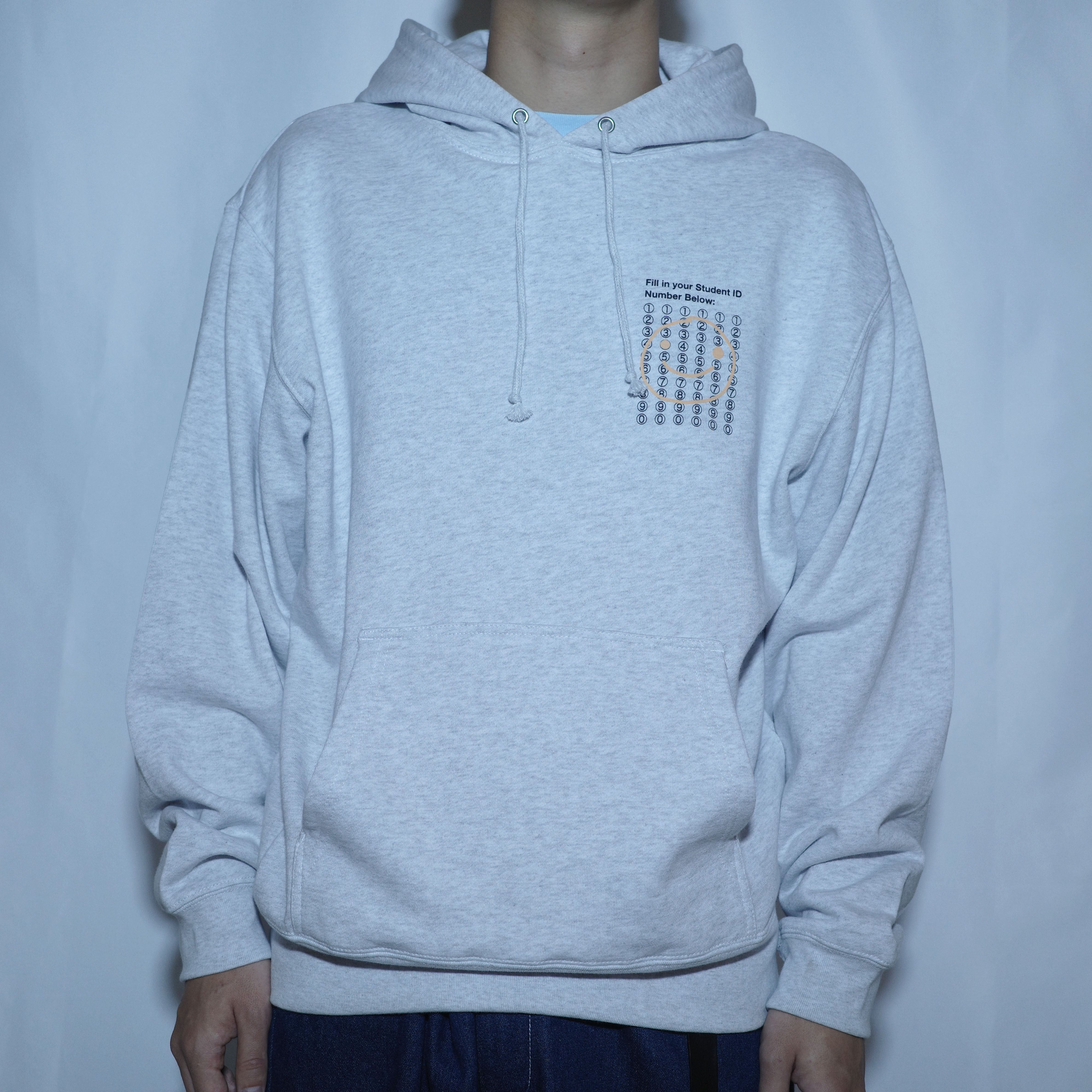 「(OvO) ASH Mark Sheet Parker」は、数字のマークシートにお花とスマイルマークを落書きしたような可愛らしいデザインのパーカーです。
