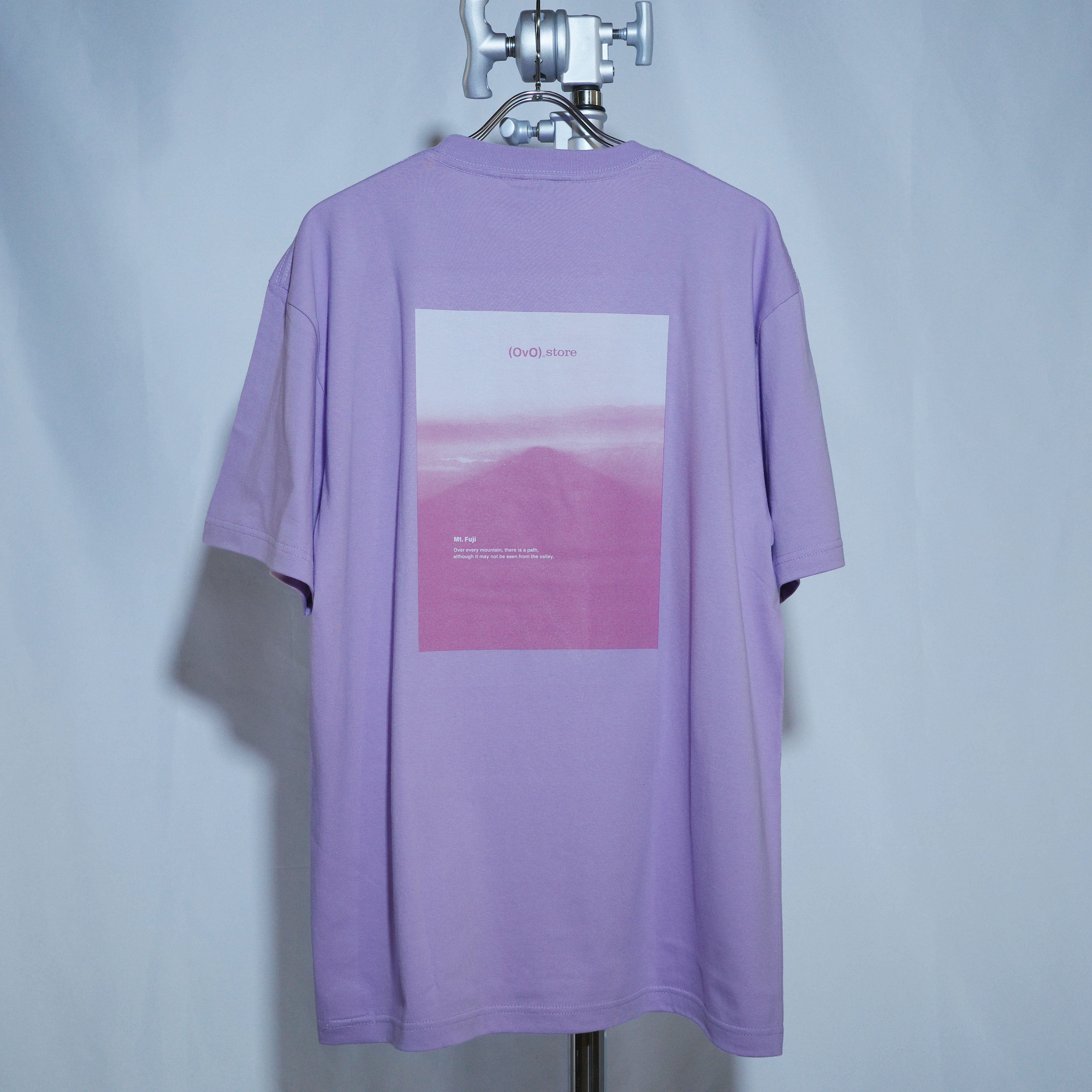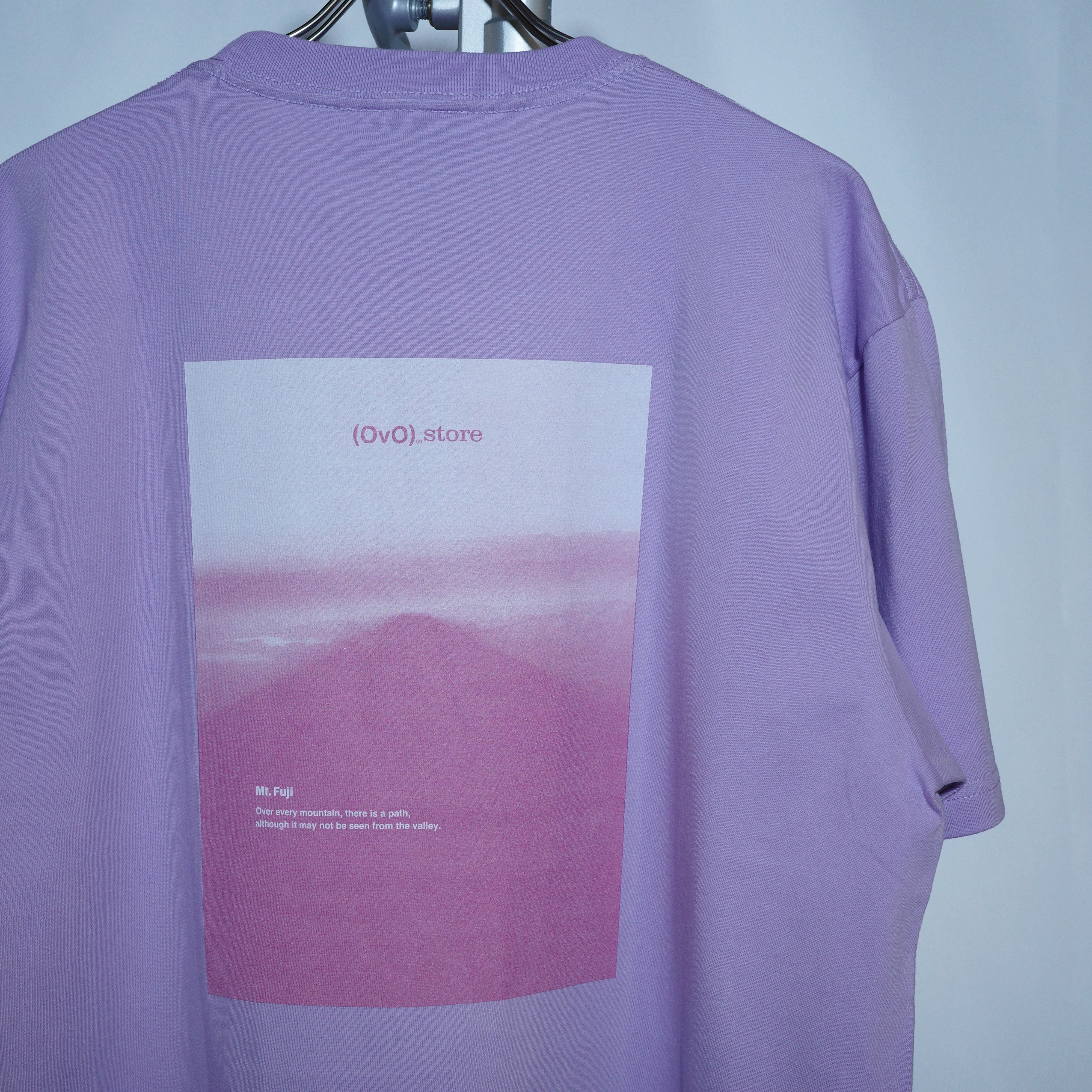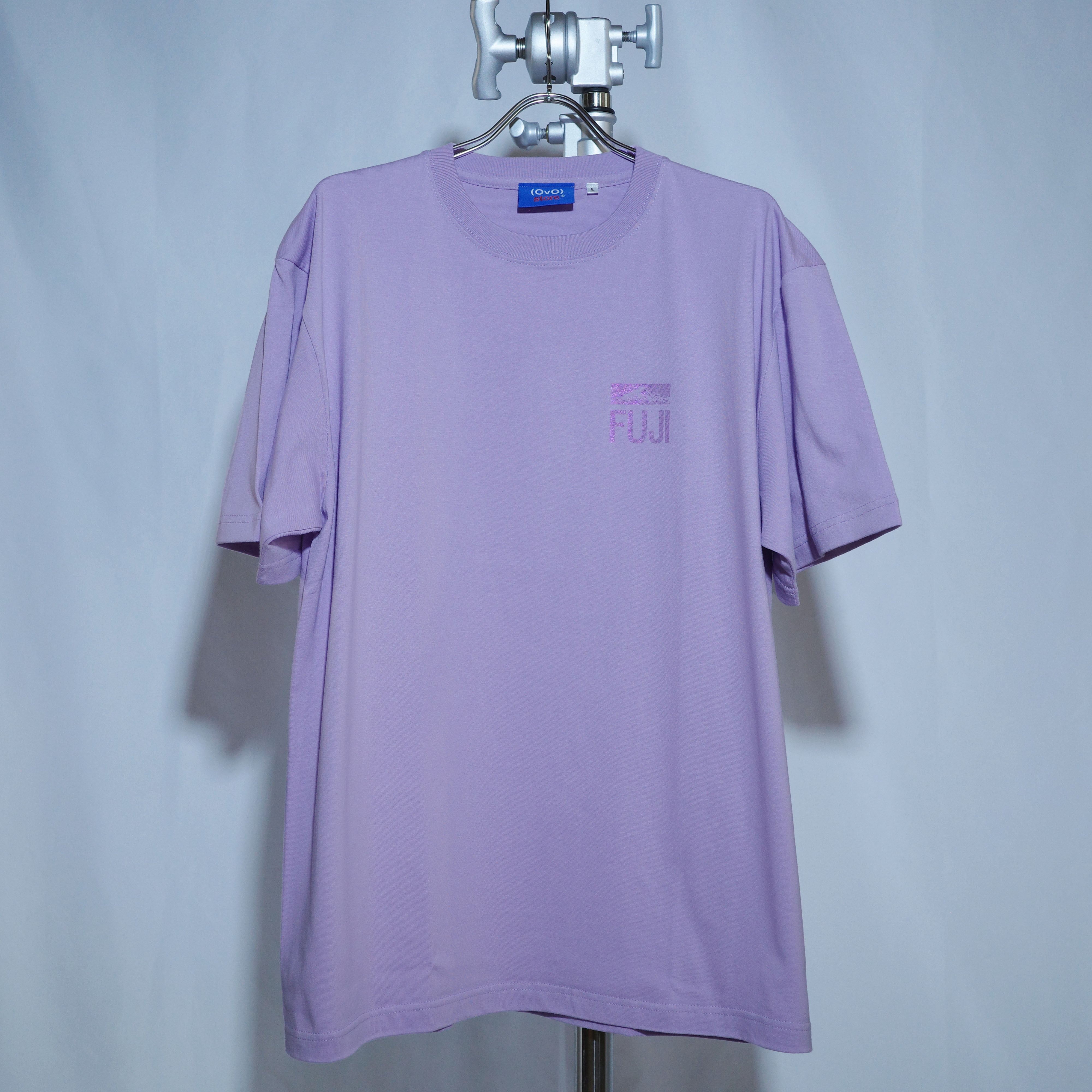 「(OvO) PURPLE Shadow Tee」は、ふわっと浮かぶような富士山の影の美しい写真をデザインに取り入れたユニークなカットソーです。