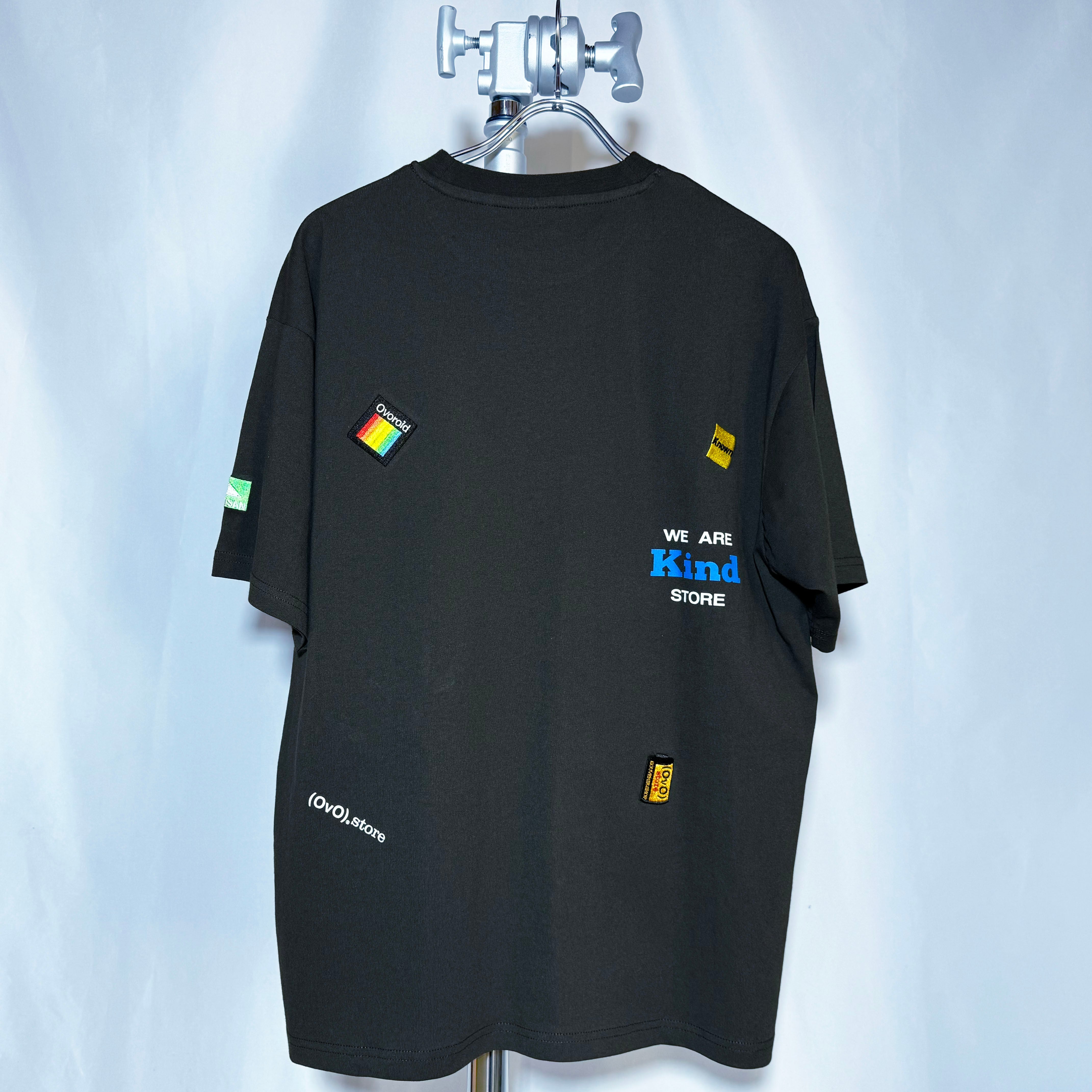「(OvO) BLACK Hommage Tee」は、シンプルながらお店の看板やファニーな(OvO)ロゴがワンポイント刺繡されたTシャツです。このアイテムは、カジュアルなスタイルにぴったりで、どんなコーディネートにも合わせやすく、普段使いから特別なシーンまで幅広く活躍します。ユニセックスデザインなので、男女問わずお楽しみいただけます。