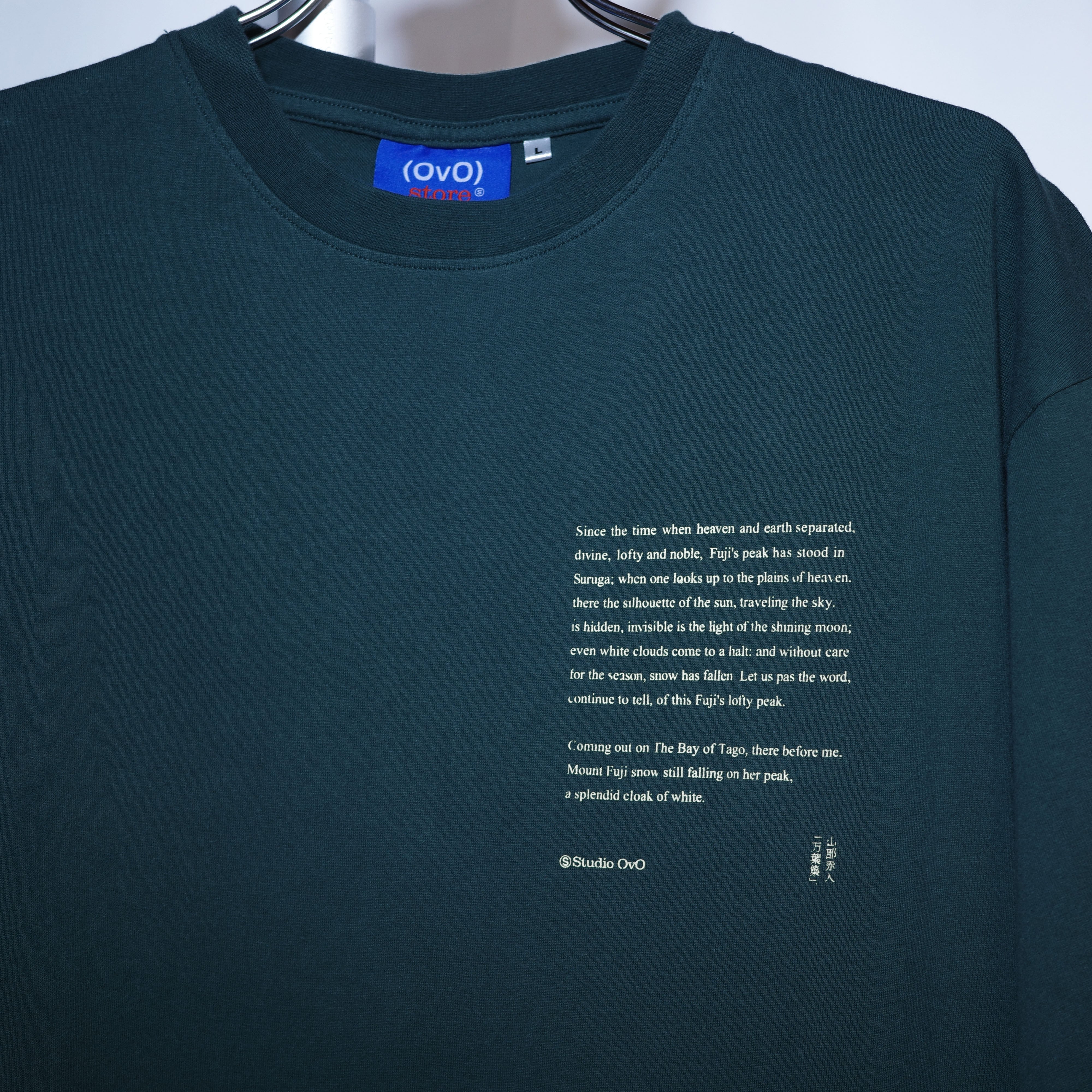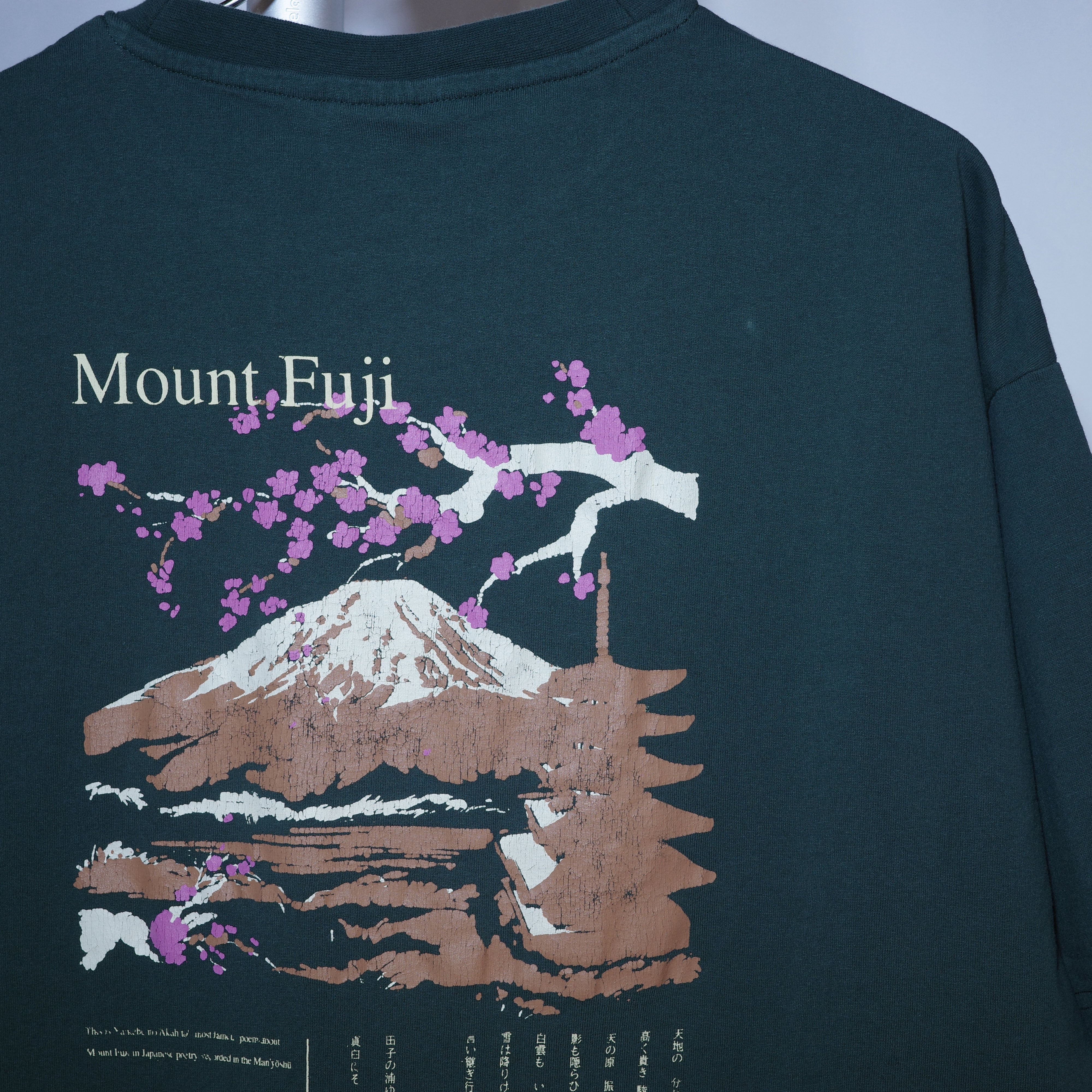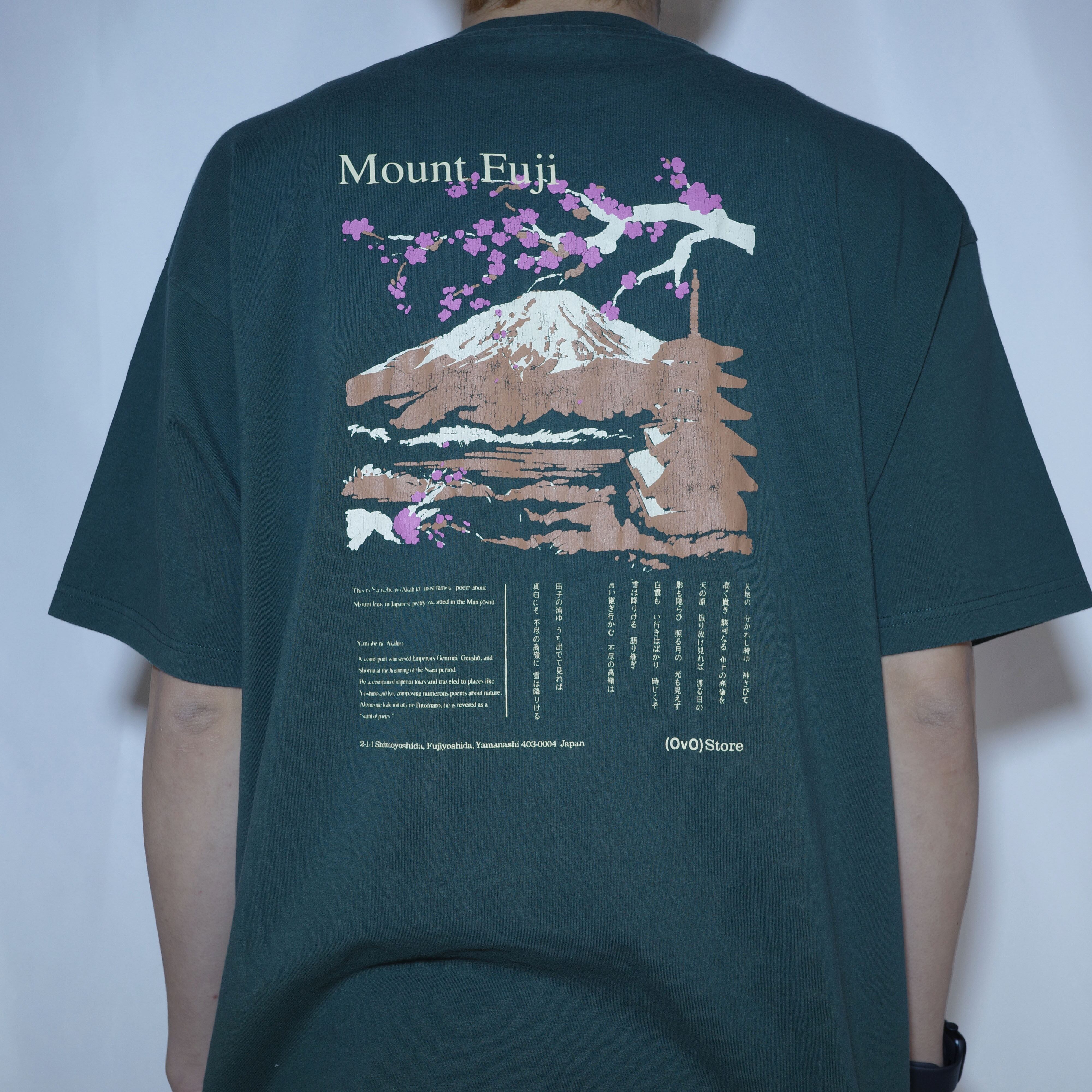 私たちが店舗を構える富士吉田市下吉田から眺める富士山の風景をデザインに取り入れた「(OvO) GREEN Mount Fuji Tee」は、富士山と桜が描かれたバックプリントが印象的なカットソーです。このアイテムは、自然の美しさを身にまといながら、カジュアルなスタイルを楽しむことができます。ユニセックスデザインなので、男女問わずご愛用いただけます。