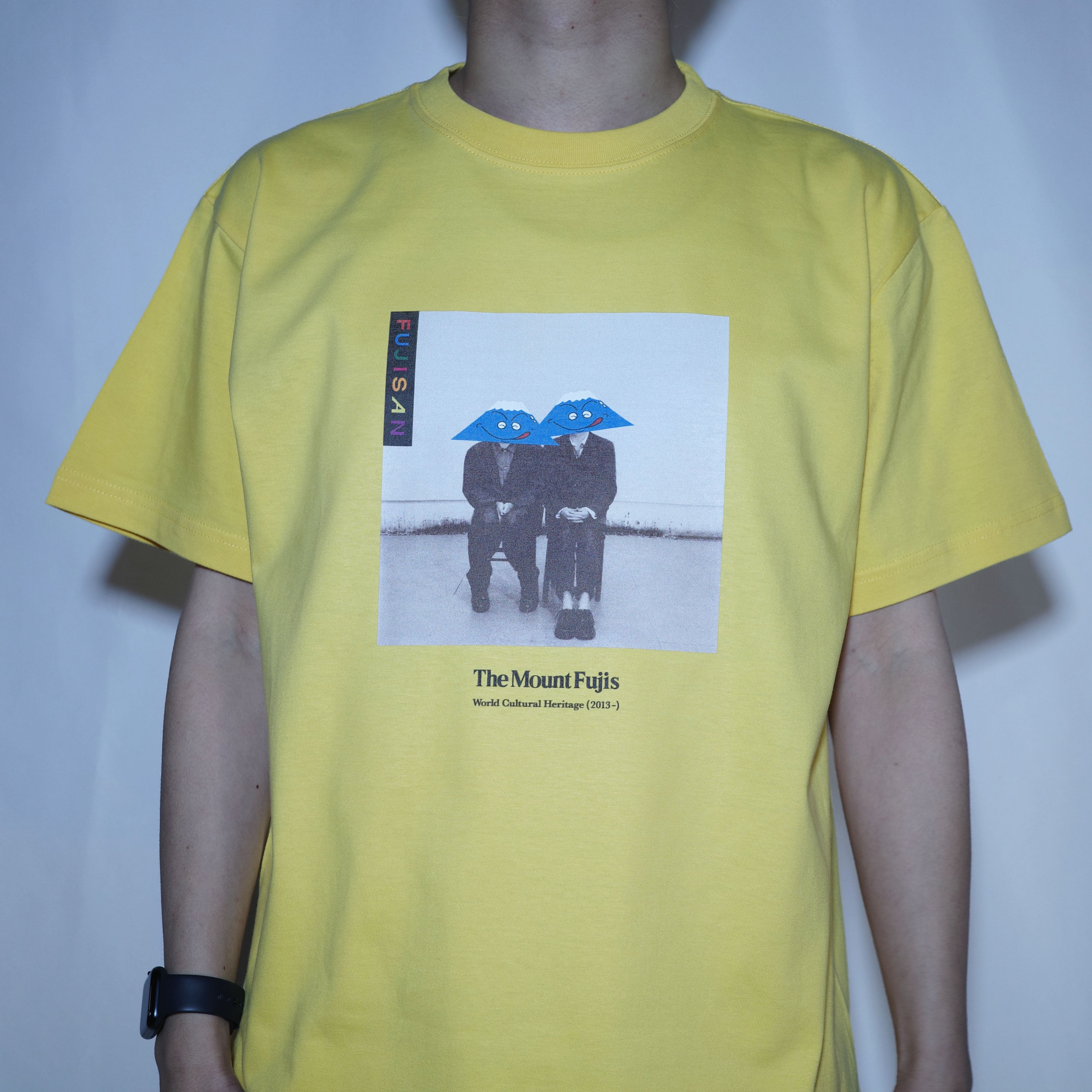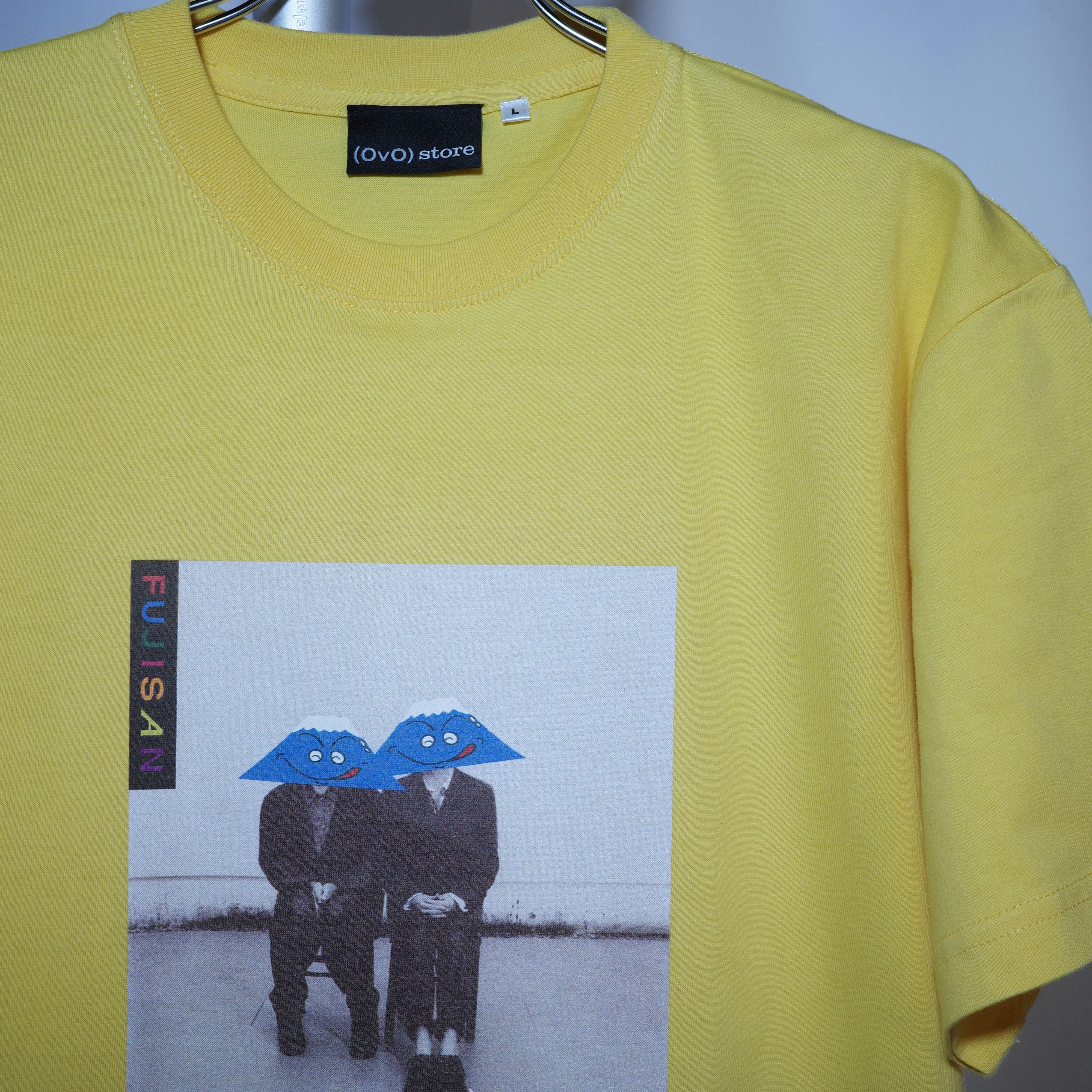 「(OvO) YELLOW Mr.FUJISAN&Friend Tee」は、富士山の顔プリントが特徴的なカットソーです。このアイテムは、カジュアルなスタイルとユニークなデザインで、日常のコーディネートに活躍する一着です。ユニセックスなデザインなので、誰でも気軽に楽しむことができます。